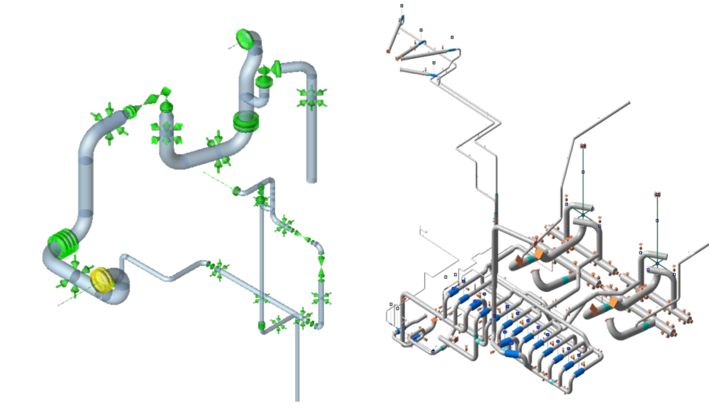 Nous réalisons le calcul de flexibilité des tuyauteries nucléaires, pharmaceutiques et pétrochimiques :